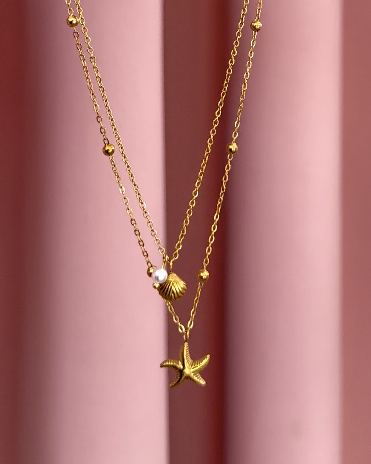 Cadena doble de acero inoxidable con dijes de Mar.